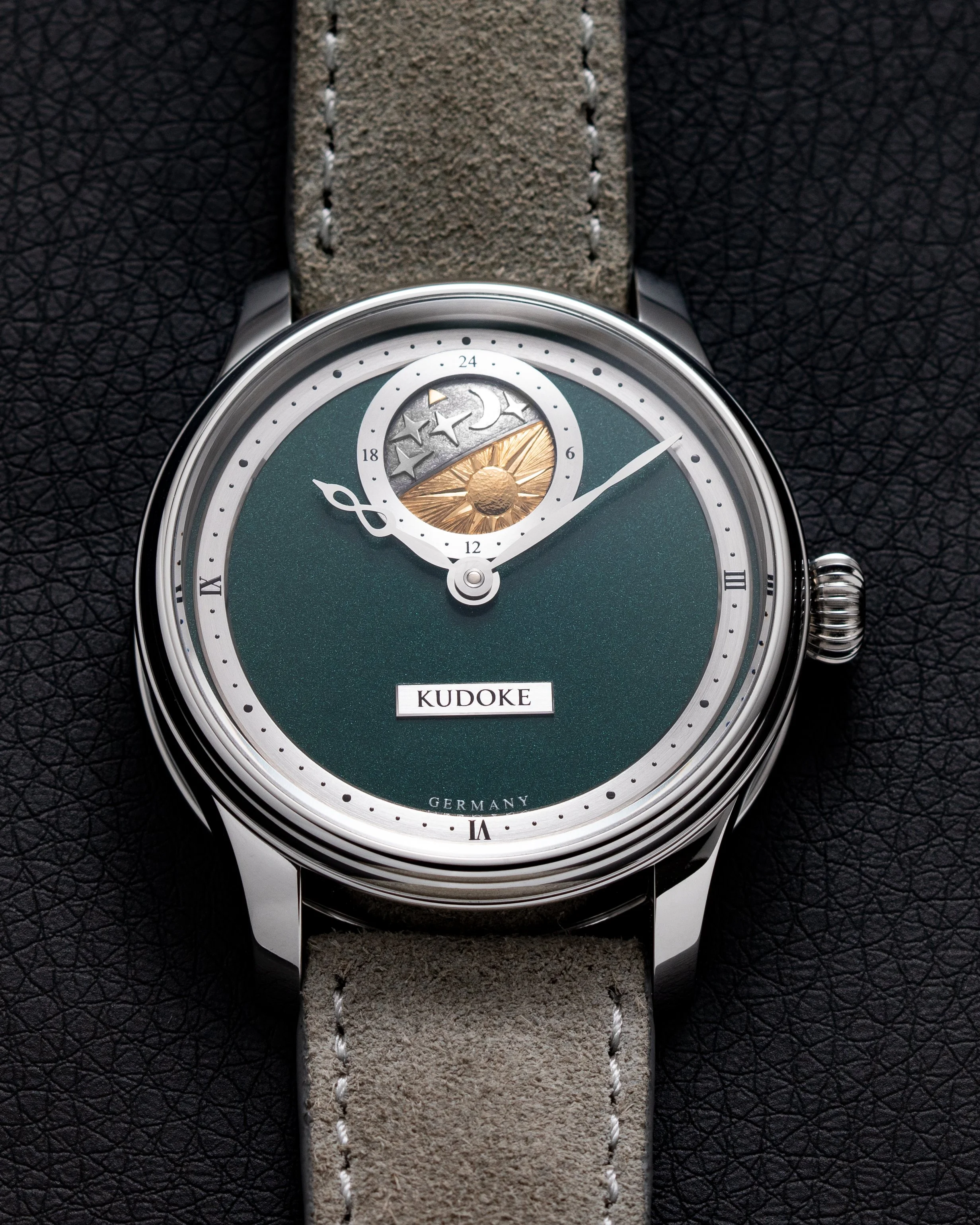 Kudoke has shifted around tradition as well. While hand engraving was always used for decorative purposes on German movements, Kudoke is bringing the craft to the dial side with the Kudoke 2’s day-night indicator. These may appear to be slight shifts, but watchmaking is a game of millimeters, tight tolerances, and micro-mechanics. Even on the design side of things, design languages develop step by step over decades, across dozens of products, as is the case with Lange’s addition of lume.