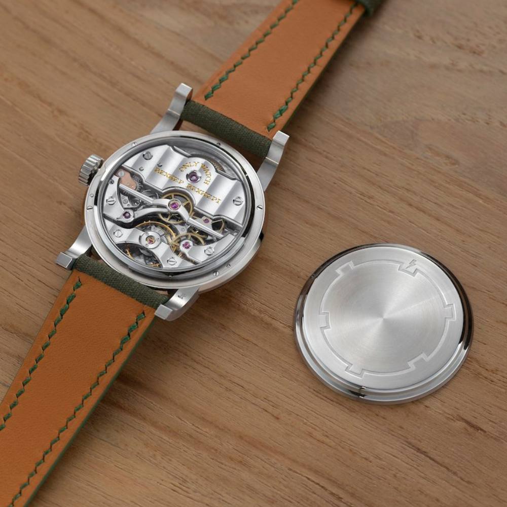 “Despite magnets being prolific in our world today, only a handful of brands have attempted a practical, anti-magnetic watch, and even fewer still have created one in an artisanal, dress watch form…until Rexhep Rexhepi’s RRCA. It features a brand-new manual-wind caliber, zero-reset function like the RRCC1 and RRCC2, champlevé enamel silver dial, stepped hands, and a 30-component stainless steel case crafted by Jean-Pierre Hagmann with a removable case back, that comes together along with the movement ring and dial plate to form a Faraday cage. For those who felt the RRCC1 and RRCC2 wear a little svelte, the RRCA has the same 38mm diameter but is 1.15mm thicker and has slightly longer lugs so it wears larger, and potentially better, in my opinion.”