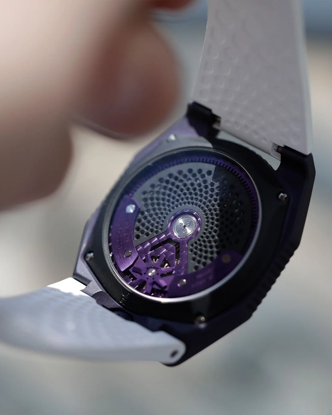 Urwerk’s UR-100 and MB&F LM101 are both great examples of a movement that creates aesthetic cohesion across the entire timepiece. For the UR-100, there’s simply no world where a “classical” movement would align with the case and wandering satellite indication of time. The automatic rotor, labeled the "The Planetary Turbine Automatic System,” matches Urwerk’s aesthetic with the introduction of a seven-tooth wheel that engages a smaller tooth track to ensure the rotor doesn’t spin too quickly when in more active use. It’s a space-age movement for a space-age watch.