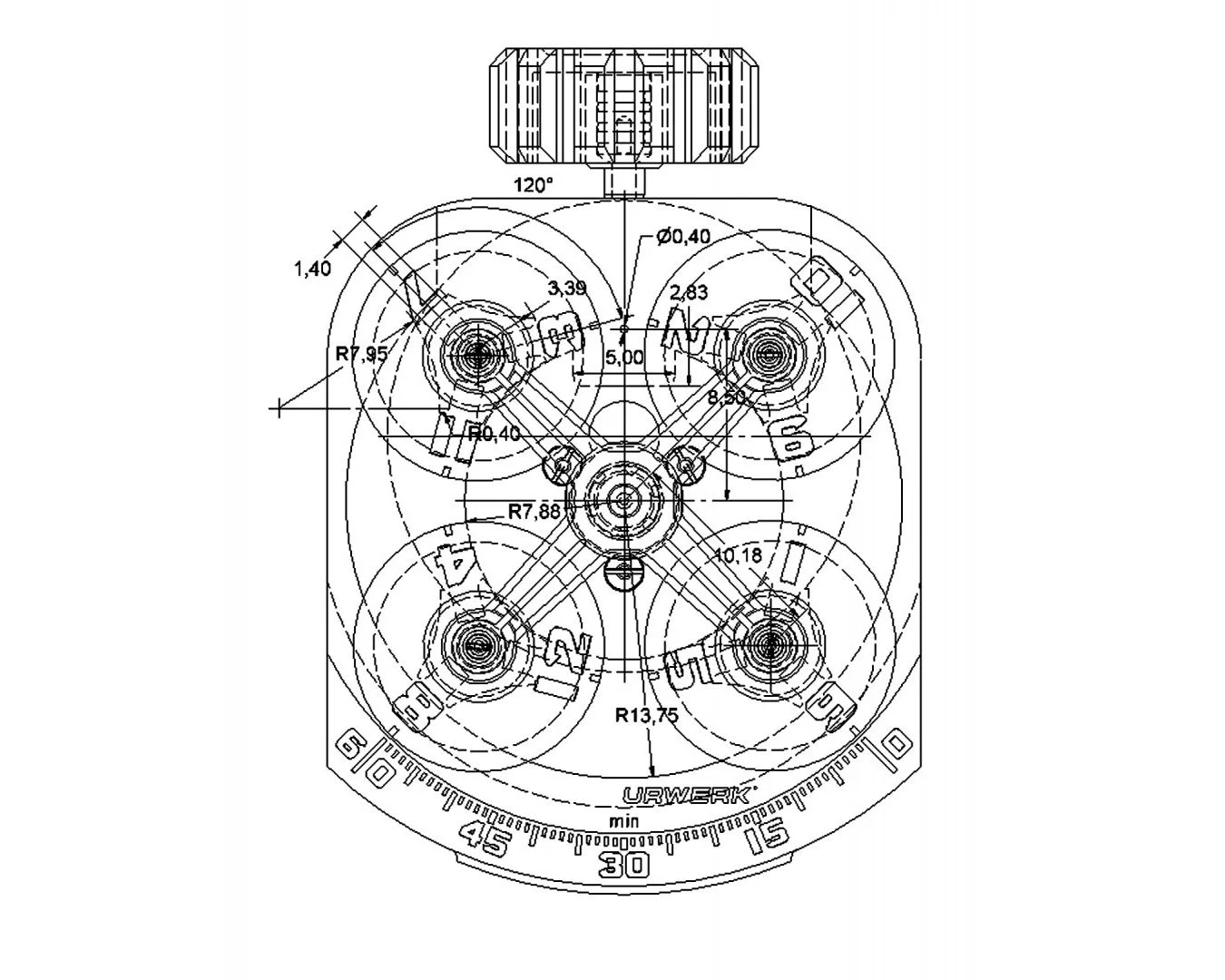 That watchmaking expertise and innovation is best represented in the challenge of ensuring isochronal performance for the satellites while minimizing friction and energy loss in the UR-103. It was no small feat designing a movement that has the power to drive the satellite indications of time, roughly 150 times heavier than traditional hands.
