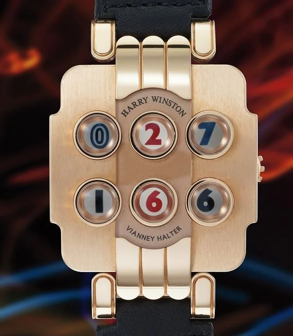 The Opus 1 in collaboration with F.P. Journe and Opus 2 in collaboration with Antoine Preziuso feature timepieces with a more classical aesthetic. Halter’s Opus 3 features a highly unusual, six porthole indication of time on a hefty squared case. With its highly complex movement with ten discs, it’s amazing that Halter’s Opus 3 indicates only hours, minutes, seconds, and a date. It made a huge splash, and propelled avant-garde watchmaking into the limelight within the broader watch and jewelry world.