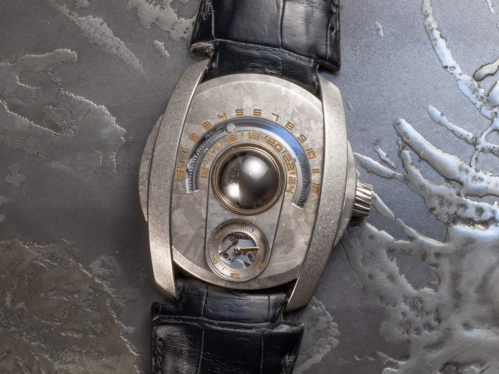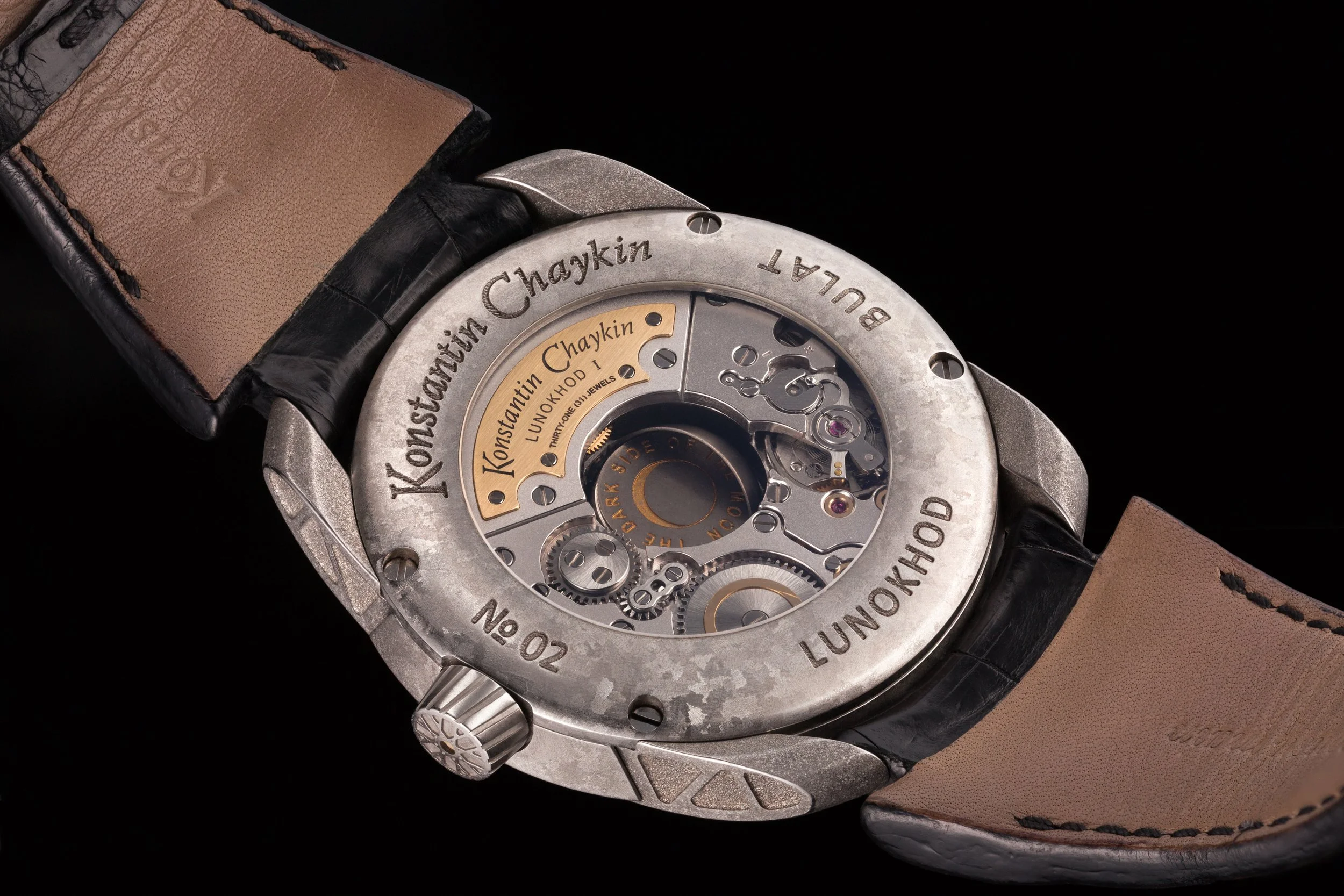 A timepiece that feels straight out of a Ridley Scott film, the Lunokhod is a striking moonphase timepiece.
