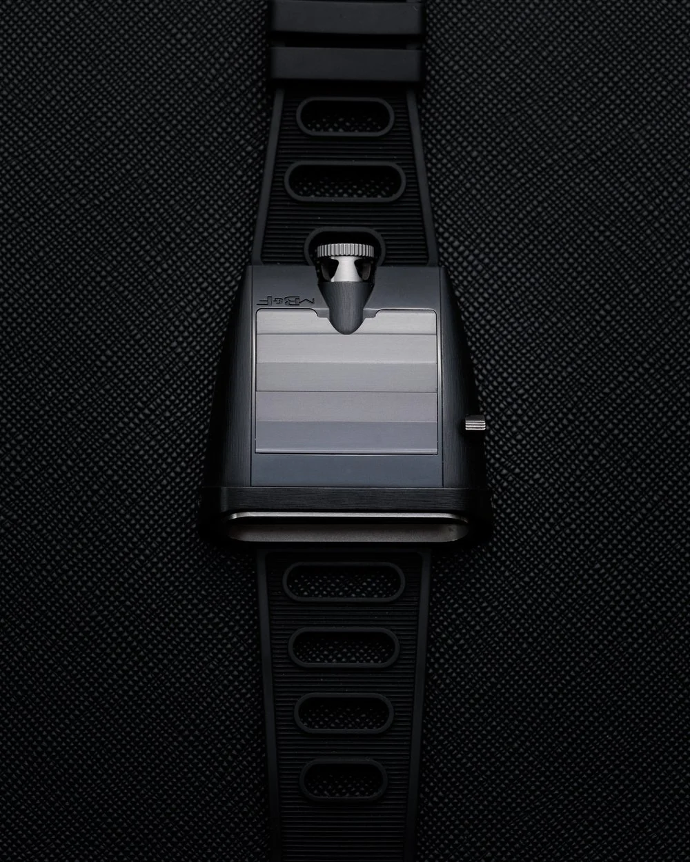 The case is made of CarbonMacrolon®, a composite material composed of a polymer matrix injected with carbon nanotubes. It offers superior tensile strength and stiffness than traditional carbon fiber reinforcing. A solid that can be coloured, polished, bead-blasted, lacquered, or satin-finished, it additionally weighs eight times less than steel. It’s an extremely versatile and interesting material from a technical, design, and ergonomic point of view. For the onlooker, this type of experimentation with materials is a solid indicator that MB&F prides itself on innovation in every possible layer of watchmaking.