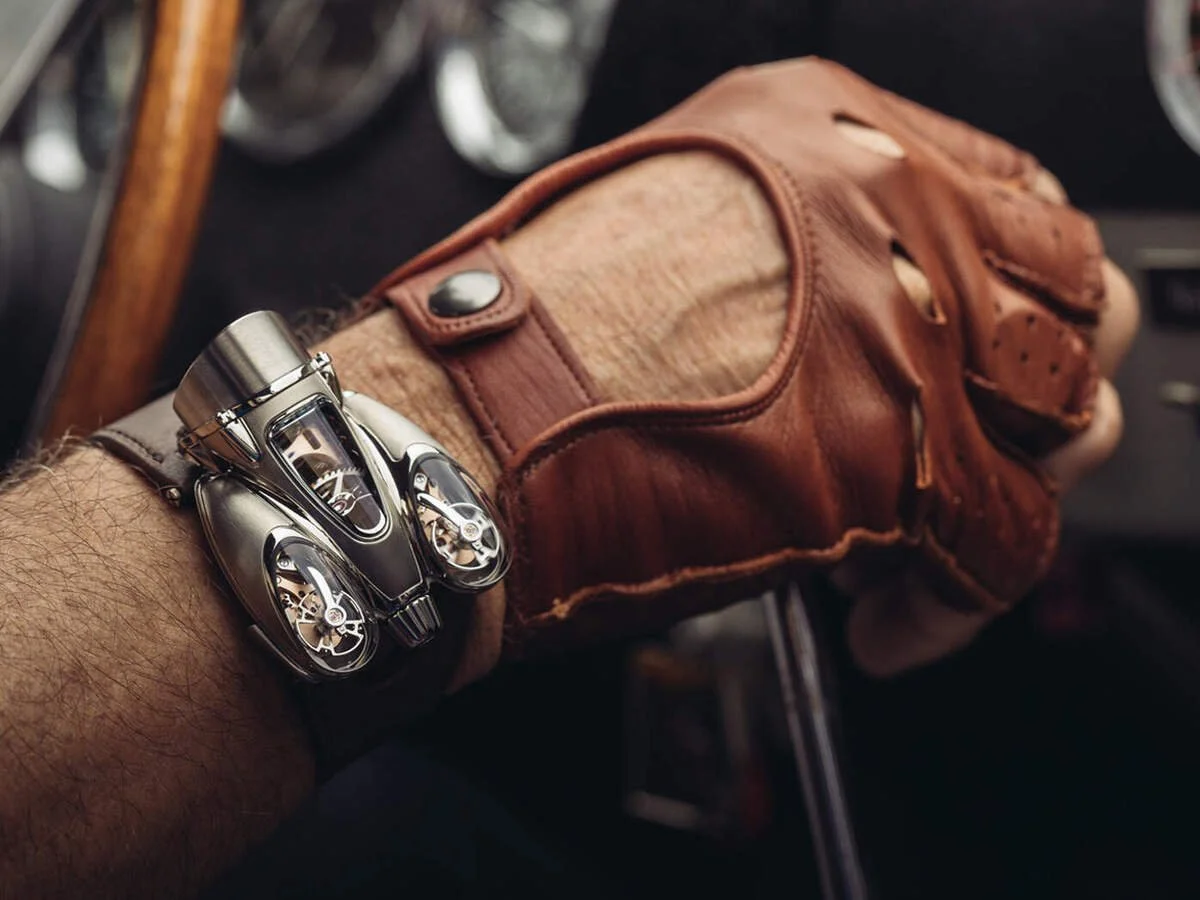 While racers now receive their timing info via headsets, this category of timepieces continues to showcase novel designs and timekeeping mechanics well into the 21st century. One of the brands that offers the most innovative driver’s watches is MB&F. Max Büsser, the founder of the brand, has long been inspired by race cars and driver’s watches occupy a major portion of the brand’s Horological Machine collection.
