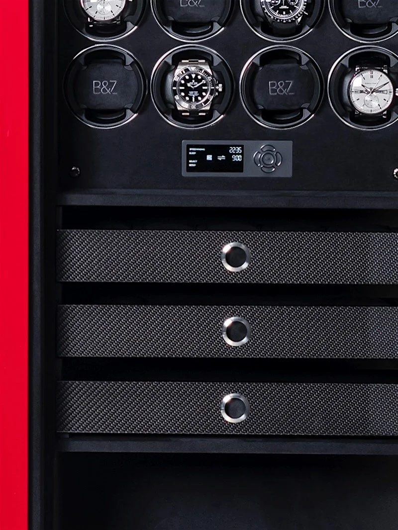 For any collector, there is always the question of price and function, especially with the likes of safes, watch winders, and watchstands. B&Z provides top-shelf, high-security safes, simply on another level in terms of their technology, aesthetics, and de facto, price. This is the Rolls Royce of safes and watch winders. As with cars, you don’t have to purchase a Rolls Royce as your vehicle – other cars will get you from Point A to Point B. Those that do indulge in the purchase of truly top-quality creations, whether it’s a Rolls Royce or a B&Z safe, do so because they recognize the value in its aesthetics, functions, and customizability. Especially for watch enthusiasts with large collections, there is something to be said about having an aesthetically pleasing safe when it’s an item that is probably looked at and interacted with on a daily basis.