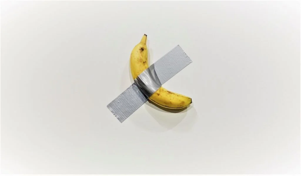 Maurizio Cattelan's Comedian, for sale from Perrotin at Art Basel Miami Beach. Photo by Sarah Cascone.