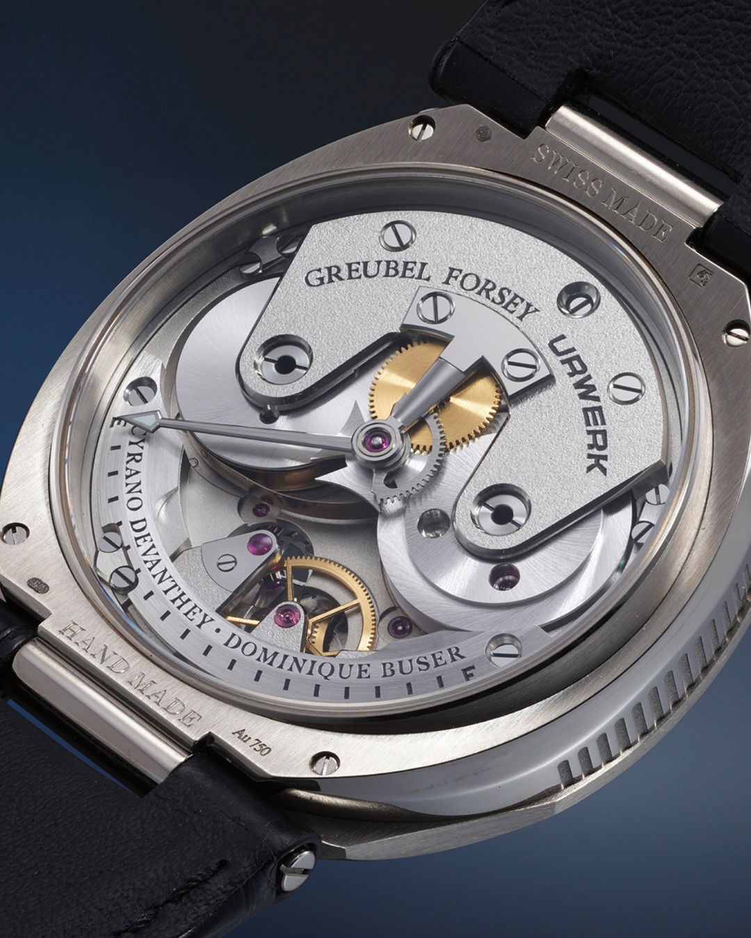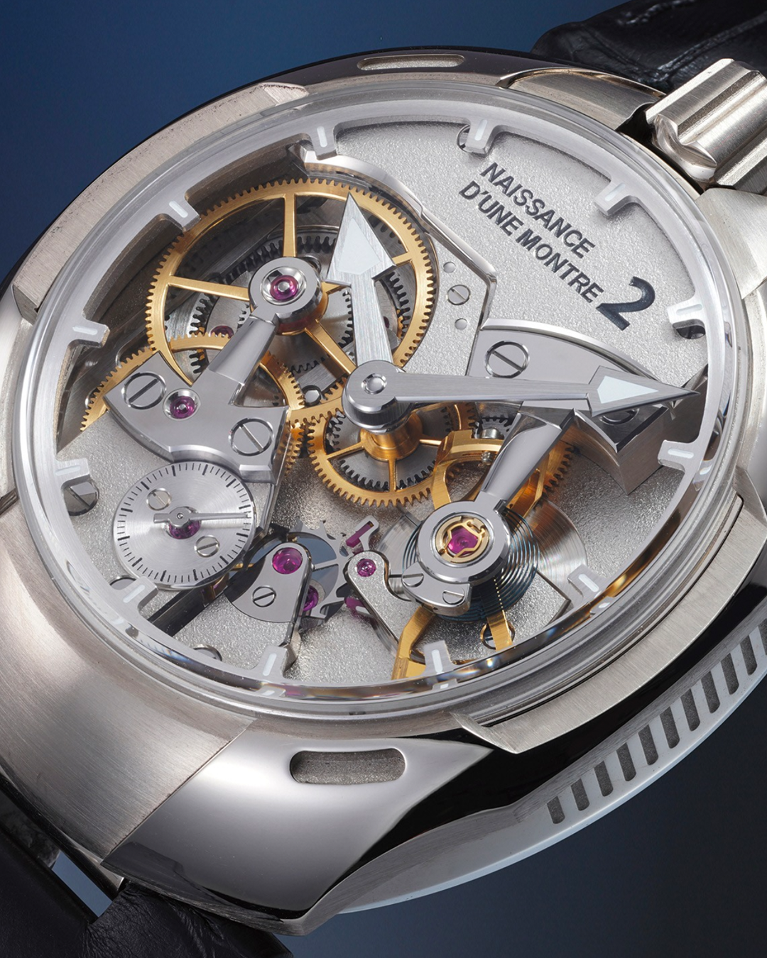 With the guidance of Greubel Forsey and Urwerk, the Naissance d'Une Montre 2 was led by two young watchmakers, Cyrano Devanthey and Dominique Buser. Both have worked with Urwerk and now create timepieces with their brand, Oscillon. Their time at Urwerk as well as Felix Baumgartner and Martin Frei’s fingerprints are all over this project with respect to the case profile and crown at twelve o’clock. Greubel Forsey’s fingerprints are on the technical aspects of the timepiece as well as the superlative quality of finish. It is a timepiece that brings together the best of the best – Urwerk’s avant-garde aesthetic, Greubel Forsey’s finish, and Oscillon’s technical innovations.