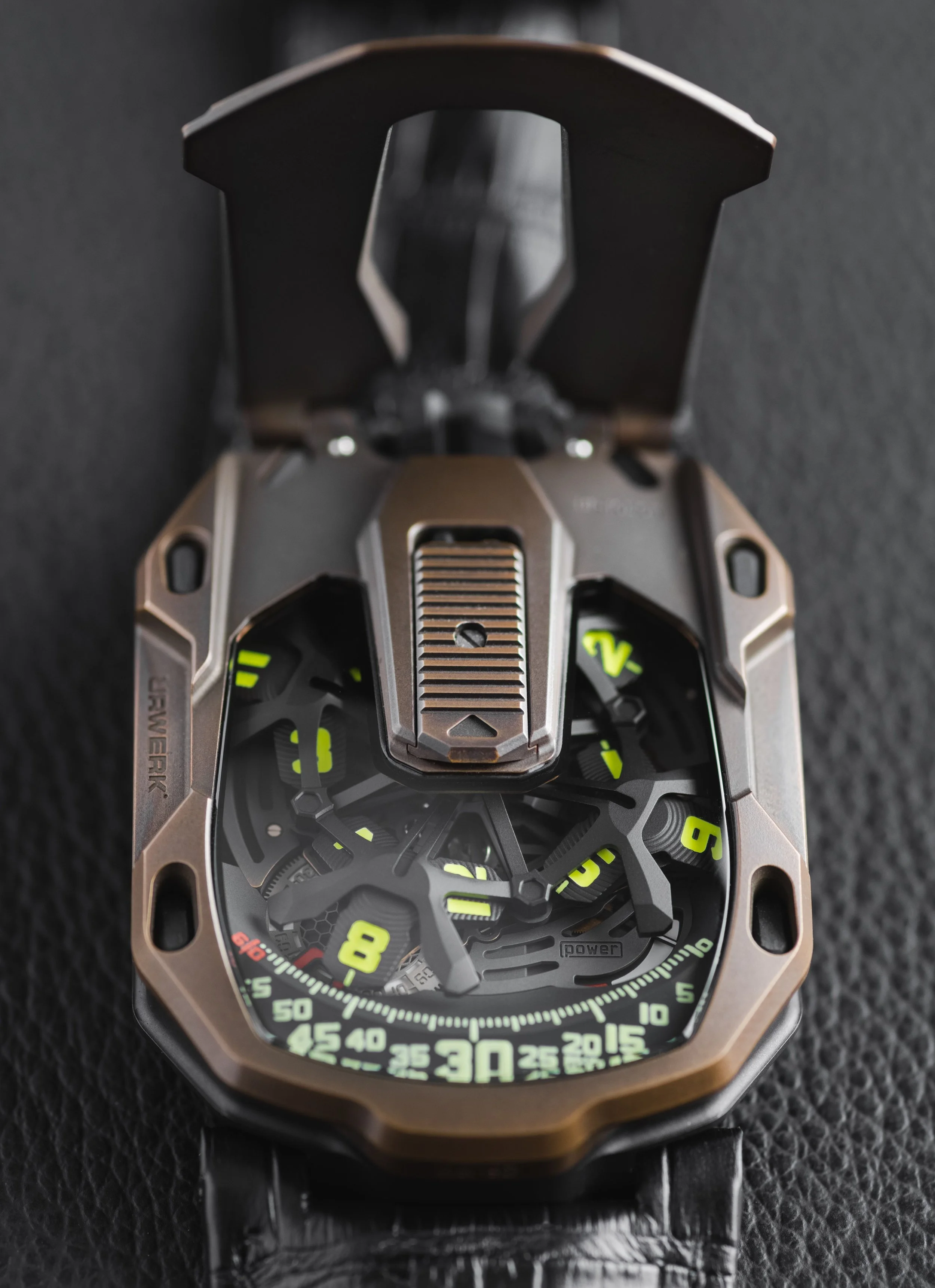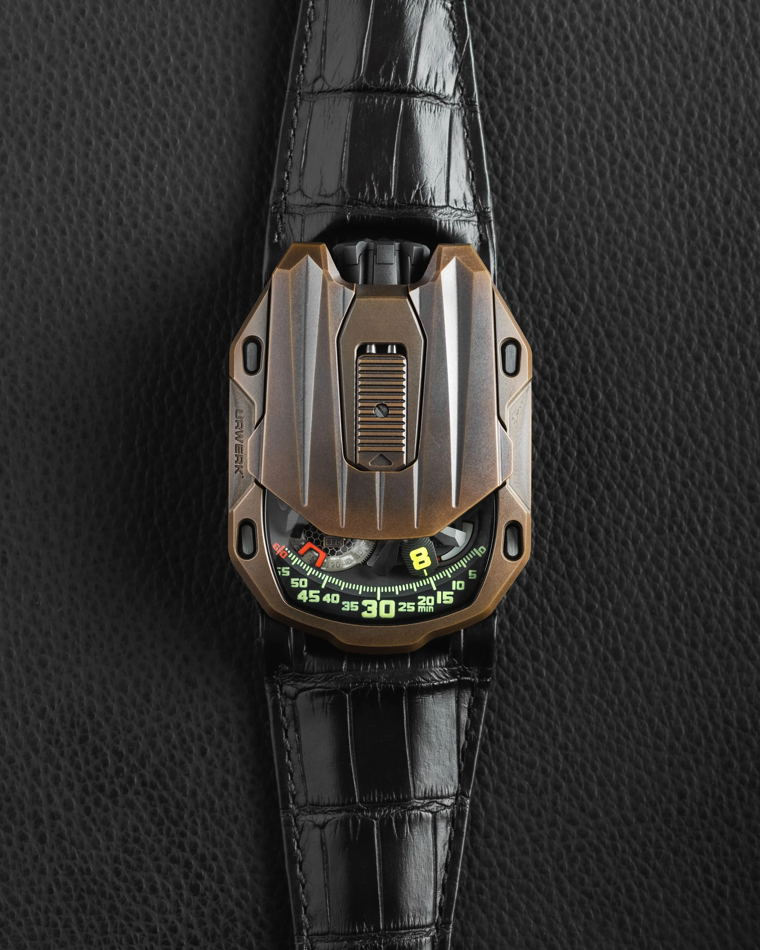 When an Urwerk series is retired, Martin and Felix are ready to explore their favorite themes of novel interactivity and protection for timepieces on a new canvas. One that fits within the evolution of their historical work, their historical pursuit of the same themes. In the case of the UR-105 Series, the duo broke the binary of open-closed dials with the CT, launched an usual icon in the brand’s design language, the T-Rex, and dug even deeper into new materials for the first time with bronze. Compared to other series so far, there are none with as many models. Meaning, the designer and watchmaker had a lot to explore and experiment with throughout the 7 year lifecycle of the UR-105.